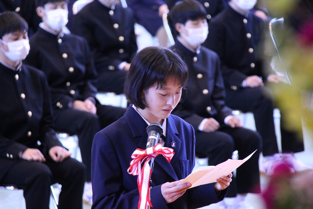 次に新入生を代表して伊藤さんが「大野高校生としての誇りを持ち、自分の夢に向かって何事にも全力で挑戦することを誓います。」と宣誓しました。