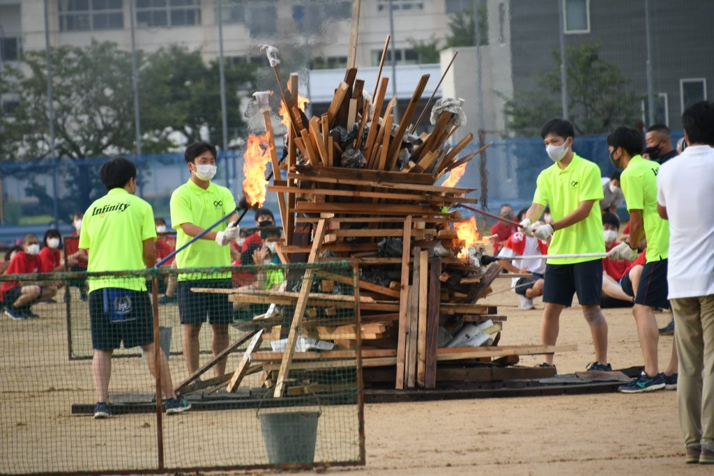 5時からは営火祭を行いました!総団長達が火をつけ営火祭が始まりました。