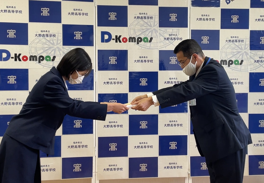 大野税務署長が来校され、賞状と記念品を受け取りました。