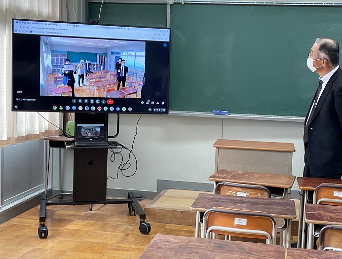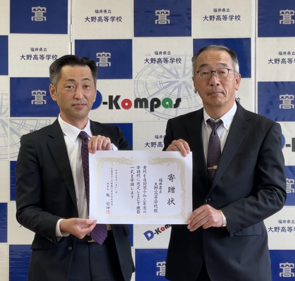 11月18日(木)北陸銀行奨学助成財団より、ウェブカメラ・モニター・モニター台が大野高校に贈られ、応接室にて寄贈式がありました。