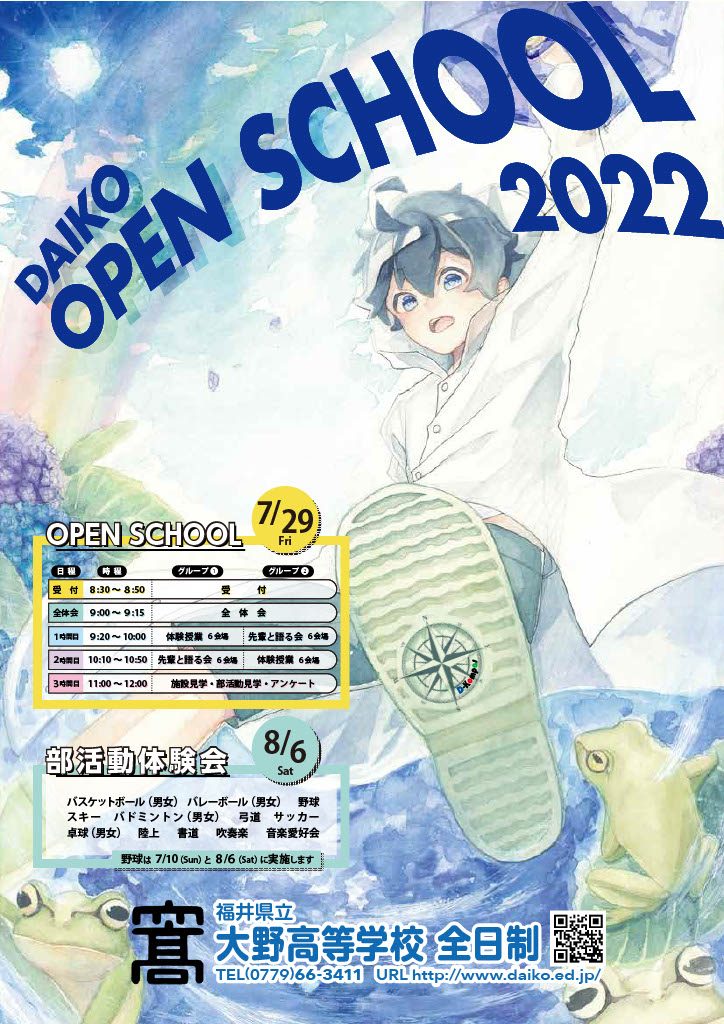 令和4年度「7/29(金)オープンスクール」「8/6(土)部活動体験会」は終了いたしました。