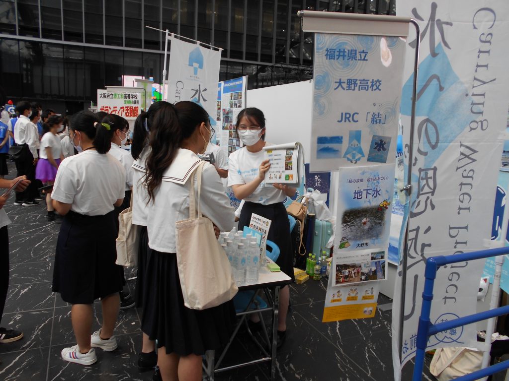 6月の地区予選を通過したJRC「結」の代表5名が、大野市や大高のボランティア活動についてブースで紹介しました。