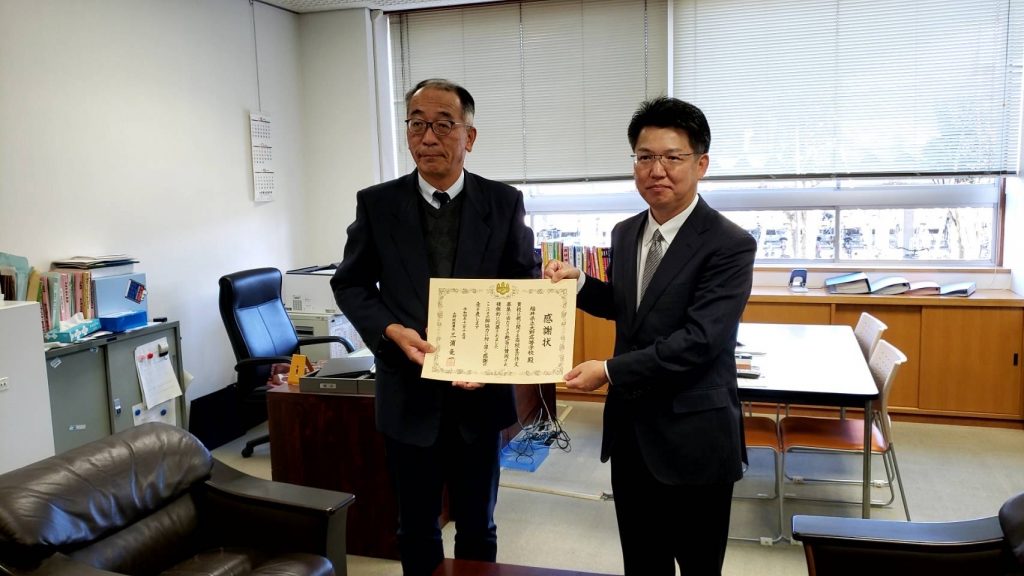大野税務署長より、賞状と記念品を受け取りました。学校にも感謝状が贈られました。
