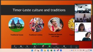 11月14日(月)~18日(金)の5日間、外務省が進める対日理解促進交流プログラムJENESYS2022が行われました。JRC「結」メンバーと国際交流に興味がある1,2年生徒らが、短期留学の代わりにオンラインで東ティモールと交流しました。