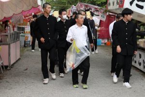 この日は偶然、学校近くにある神社のお祭りでした。