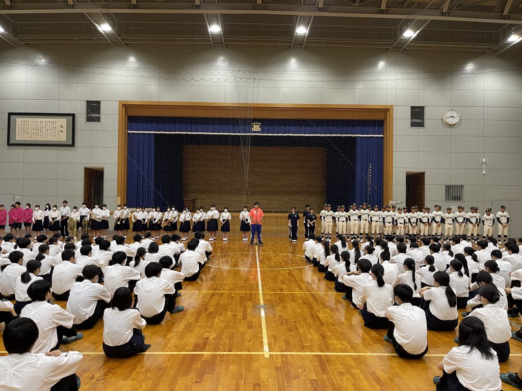 そして、1日目終了後、夏の大会目前の野球部、上位大会に出場する吹奏楽部、水泳部、陸上部、模擬裁判選手権出場グループの壮行会が行われました。全力を出し切れますように!