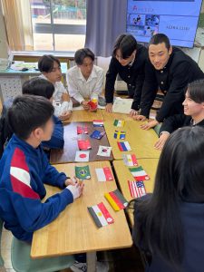 県・大野市の教育に関する大綱に即し、小・中・高連携の一環として、大野市教育委員会と連携し、2年B組が市内の小学5・6年生と英語で交流しました。小学生からは「いろんな問題を出してくれて楽しかった」、高校生からは「小学生に分かりやすい英語を考えながらみんなと楽しく話すことができた」「グループ一丸となって小学生を盛り上げることができた」などの感想が聞かれました。