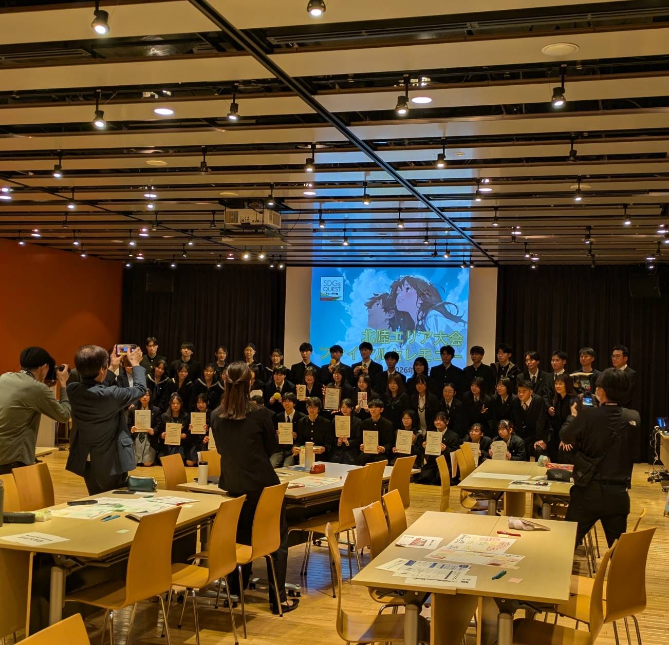 3月22日(日)「SDGs QUEST みらい甲子園 北陸エリア大会」が石川県北國新聞社赤羽ホールで開催され、予選を通過した3県12チームが「高校生が考える社会問題解決のためのSDGsアクションアイデア」を発表しました。