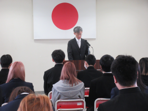 後期始業式が実施されました。中森校長からは物事の成功率は継続することで上がっていくことや、のみの跳躍力を例に自分の可能性を閉じずに意欲的に物事に取り組んでもらいたい、といった話がありました。