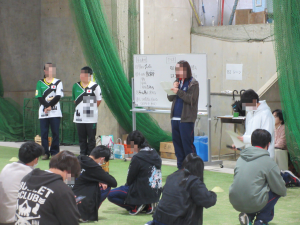 後期の球技大会でソフトバレーを行いました。同学年を基本に9チームを作り、リーグ戦、決勝トーナメントを行いました。連携プレーを試したり、異なるチームへも声を出して応援したり、寒い中でも充実した大会となりました。