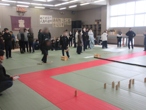新入生歓迎会を行いました。昨年度と同様に学年を縦割りにしてチームを作り、モルック競技に取り組みました。アドバイザーとして「ゆるモルック協会」の方をお迎えし、コツを教えていただきながらゲームを楽しみました。勝つためにチーム内で真剣に相談したり、ナイスショットに歓声をあげたりと方々で親睦を深める様子が見られました。