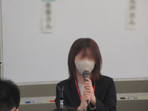 社会人として活躍している卒業生4人を迎え、卒業生と語る会が行われました。卒業生は、学生時代の思い出、どのように進路を決めたのか、在校生へのアドバイス等のテーマに対し真剣に話をしてくれました。在校生からは、「進路のことで悩んでいるけど、先輩のお話を聞けて参考になった」等の感想が聞かれました。