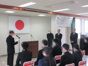 卒業式が挙行されました。校歌斉唱や卒業証書授与の点呼に晴々と返事をする声が響きました。式辞の中で中森校長から卒業生に高校生活で頑張ったこと、今後期待することなどが話されました。卒業式に引き続き、生徒会主催で卒業生へプレゼントや感謝の言葉が贈られるなど、とても心温まるセレモニーとなりました。