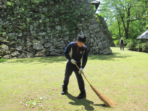 環境学習を行いました。越前おおの結ステーション内の藩主隠居所において、大野市主任学芸員 田中孝志氏から江戸時代の大野の暮らしや居室の特徴について、お話をうかがいました。また、平成大野屋にて万華鏡づくりや二階蔵の見学をしました。その後、亀山近辺の美化活動を行いました。生徒からは「なじみの深い亀山の清掃ができてよかった」等の声が聞かれました。