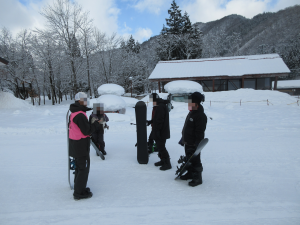 冬の遠足で、九頭竜スキー場に行きました。スキー班、スノーボード班、雪と触れ合う研修班に分かれて活動し、スキー班とスノーボード班はインストラクターから講習を受け、雪と触れ合う研修班は、二人乗りのそりや雪遊びを楽しみました。スノーボードは初めて…という生徒も、研修後は一人でゲレンデを降りてこれるほど上達を見せていました。