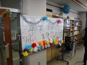 卒業生を送る会を開催しました。今年は卒業生を囲み、それぞれのグループで鍋やたこ焼きを楽しみました。ビンゴ大会や、入学から卒業に至る軌跡の動画も上映されました。その後、卒業生から一人ずつメッセージがありました。温かい雰囲気が流れる卒業生を送る会でした。