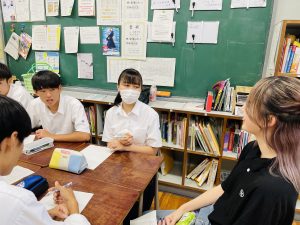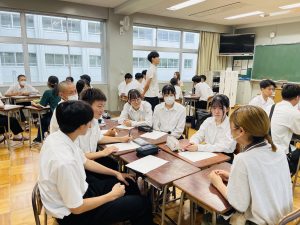 9月11日、本校をR4年度に卒業して現在大学・短大・専門学校1年生の先輩から、文理選択や大学生活について教えてもらいました。